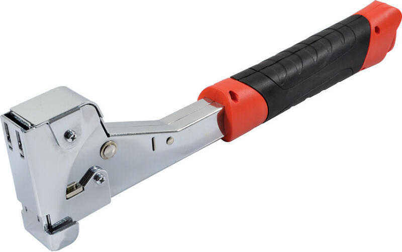 Kalapács tűz'gép. Különféle alkalmazásokra megfelel beleértve sz nyegek lehelyezése és tet k nemezelése Acélból készült krómozott finiseléssel kényelmes guminyéllel Használat 140-es típusú kapcsokkal
