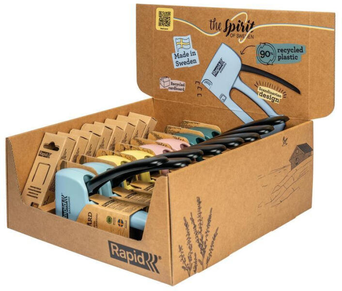 Fedezze fel a RAPID R53 Spirit of Sweden tűzőgépet - a tökéletes társ a kreatív térben! 90%-ban újrahasznosított műanyagból készült, amely régi hűtőszekrényekből származik, ez az eszköz nemcsak praktikus, hanem környezetbarát is. Büszkén gyártják a svédországi Hestrában, amely a magas minőség és megbízhatóság szimbóluma. A lakberendezés legújabb trendjeinek megfelelően ez a tűzőgép elegáns és funkcionális kiegészítője lesz a munkaterületének. Tűzőgépünket gondosan megterveztük és az Ön igényeihez igazítottuk. Könnyű, könnyen kezelhető és ideális bútorok kárpitozásához, különböző típusú szövetekkel végzett dekorációs munkákhoz