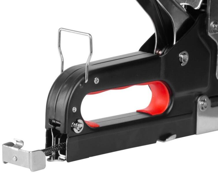 A Strend Pro kézi fuzogép anyagok kapcsokkal történo csatlakoztatására szolgál. Ez egy robusztus és tartós eszköz, amellyel könnyedén rögzíthet különféle anyagokat, mint például szövet, kárpit, karton, keret stb. C 4-14 mm típusú kapcsokhoz használható, szélesség 10,6 és 11,3 mm, D 10-12 mm, B szög 10-14 mm. A praktikus, muanyag dobozos csomagolás 400 db C 8 mm-es tuzokapcsot is tartalmaz.